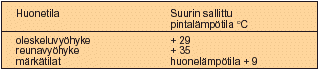 Lattioiden pintalämpötilojen suurimmat sallitut arvot