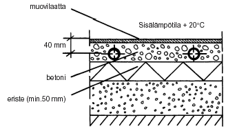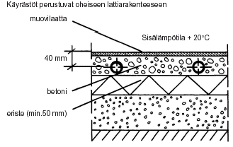suuntautuva lämmitysteho riippuu lattiarakenteesta. Putkien yläpuolella