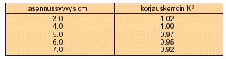 oletetuista, niin taulukoista 5 ja 6 saadaan korjauskertoimet