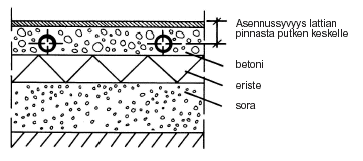 Lattian päällyste, putkiston pituus, nimelliskoko, asennussyvyys